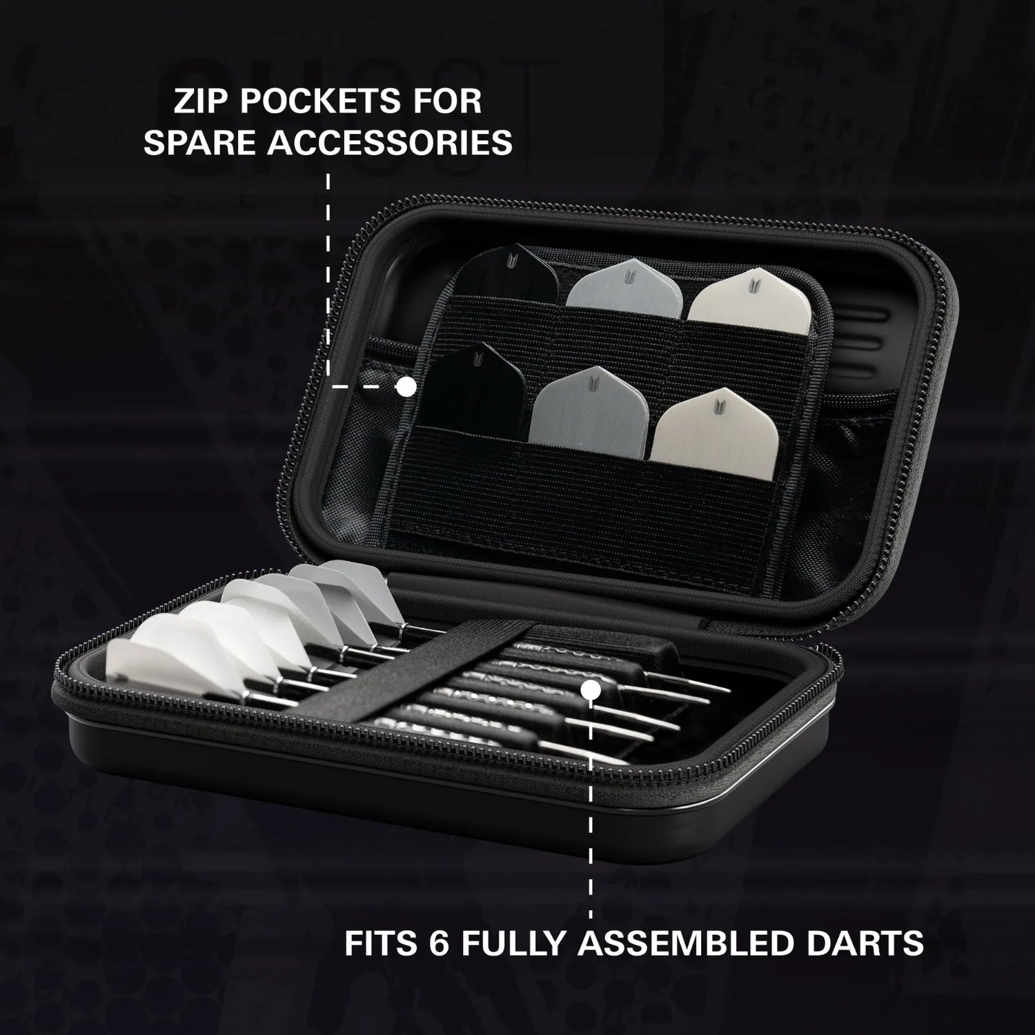 Constructed with a durable hard-shell exterior, the Takoma XL provides outstanding protection for your darts. The scratch-resistant interior securely holds six fully assembled darts, while the expanded layout offers additional storage for spare flights, shafts, Swiss Points, and a Swiss Point tool. Combining premium materials, practical storage, and modern styling, the Takoma XL is the ultimate dart case for serious players.