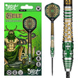 Wield your spear and flaunt your antlers. The Cernunnos dart set captures the wisdom of this forest guardian and mystical Celtic god of beasts and wild, mist-shrouded landscapes. With its intricate texture, its Celtic Cross, and Briar grips carved like the bark of mighty oaks and coated in green and gold, this front-weighted 90% tungsten barrel will help you see the wood for the trees.