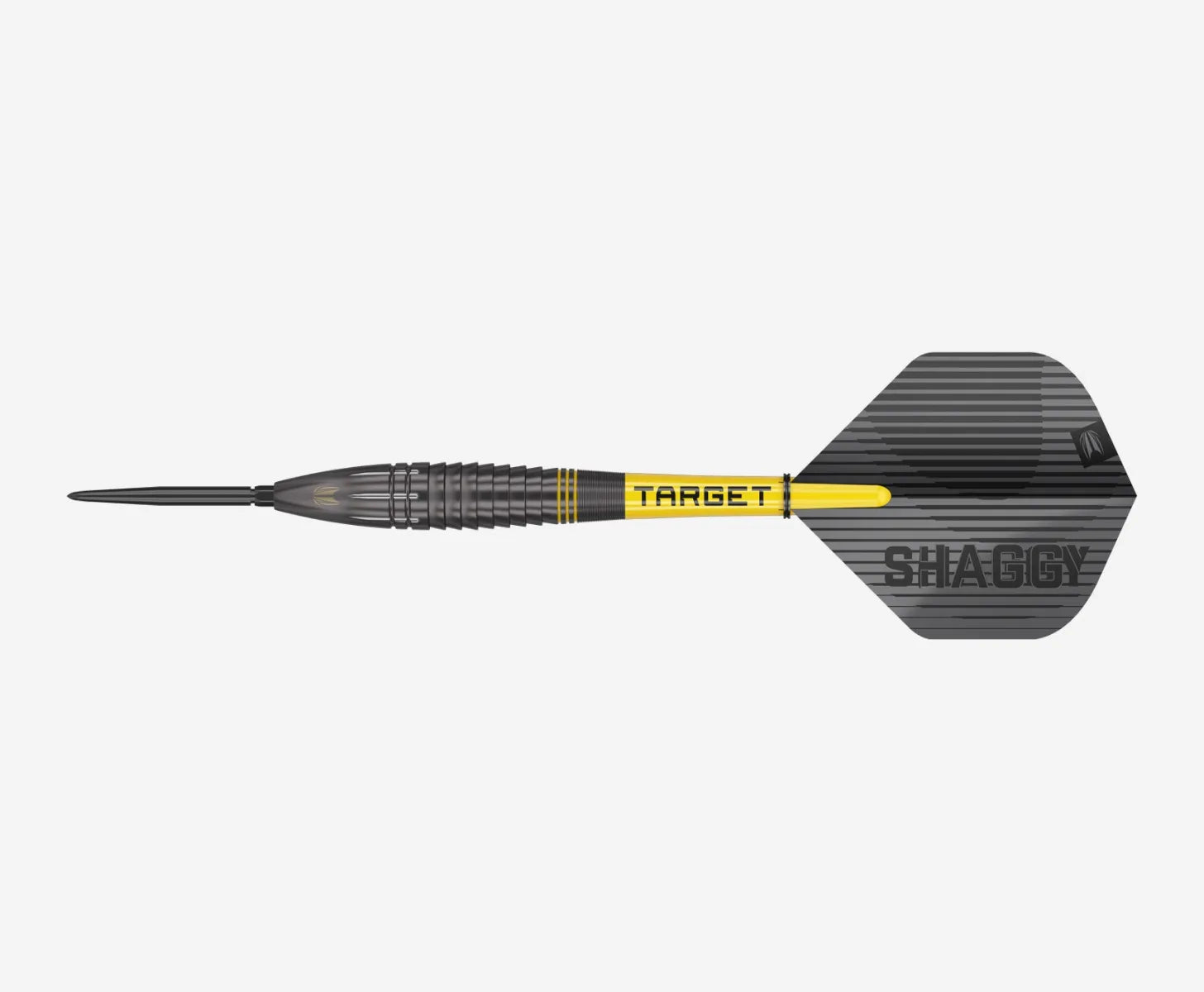 Introducing the Scott Williams Black Steel Tip Dart Set, a player edition dart set designed in collaboration with Scott Williams, AKA “Shaggy”. The 90% Tungsten Barrel is meticulously crafted for the perfect balance between weight and slimness, enhancing accuracy and dart control.