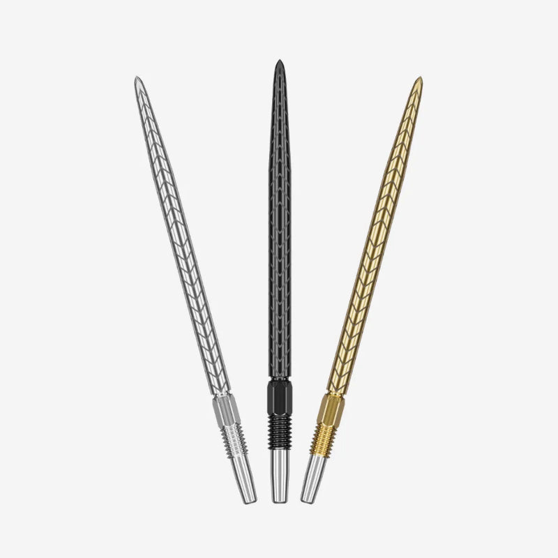Target’s Swiss RVE Points, designed in conjunction with the Rove darts, with a laser-etched design offering maximum board grip. Swiss Points are designed with a patented locking mechanism, allowing for effortless switching of dart points. The taper and thread technology provide a secure and locked-in position, delivering stability and precision during every throw.