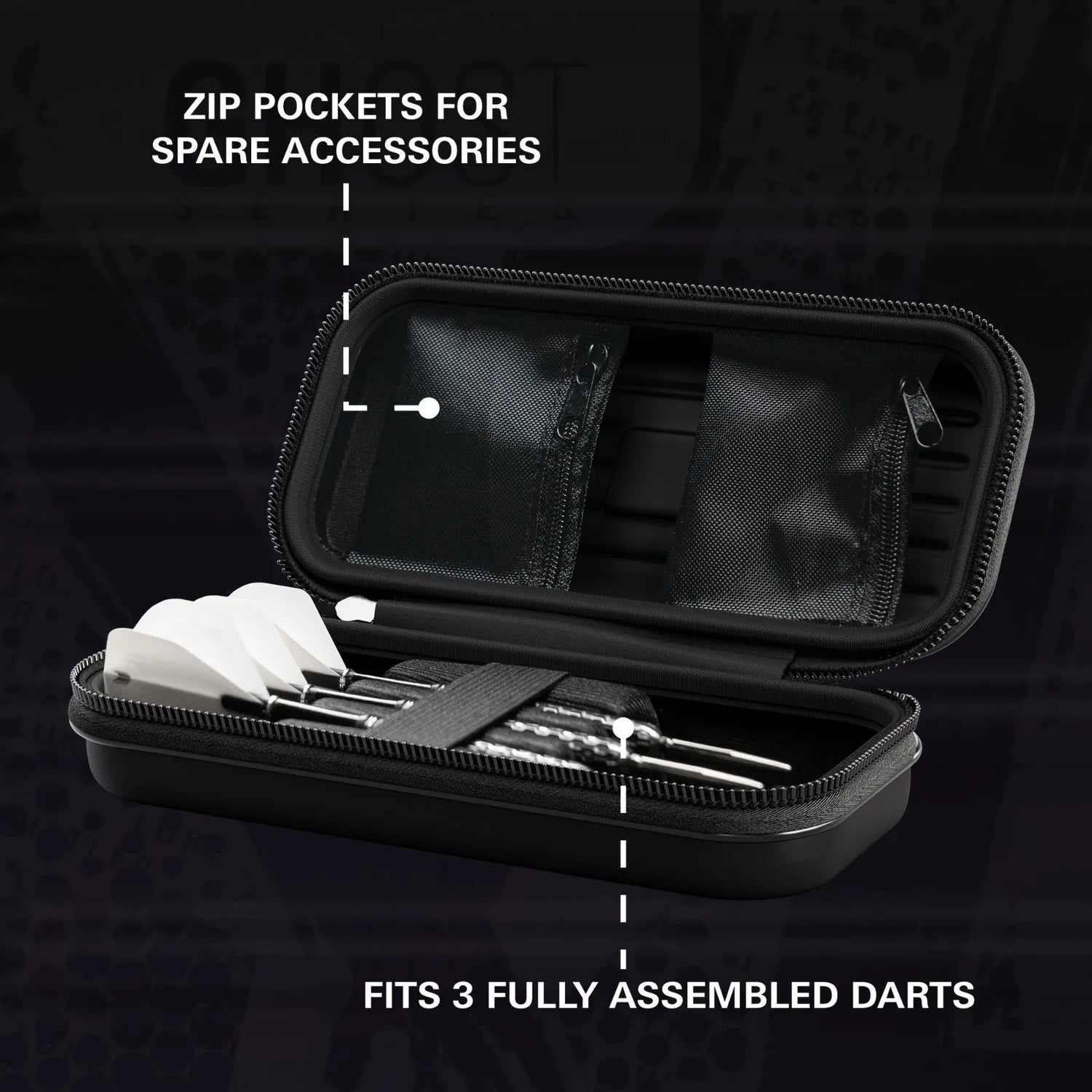 Constructed with a durable hard-shell exterior, the wallet offers reliable protection for your darts during transport and storage. The scratch-resistant interior securely holds three fully assembled darts, while dedicated zip compartments provide convenient storage for spare flights, shafts, Swiss Points, or a Swiss Point tool. Blending protection, functionality, and signature Luke Littler styling, the Takoma Wallet is an essential case for serious players.