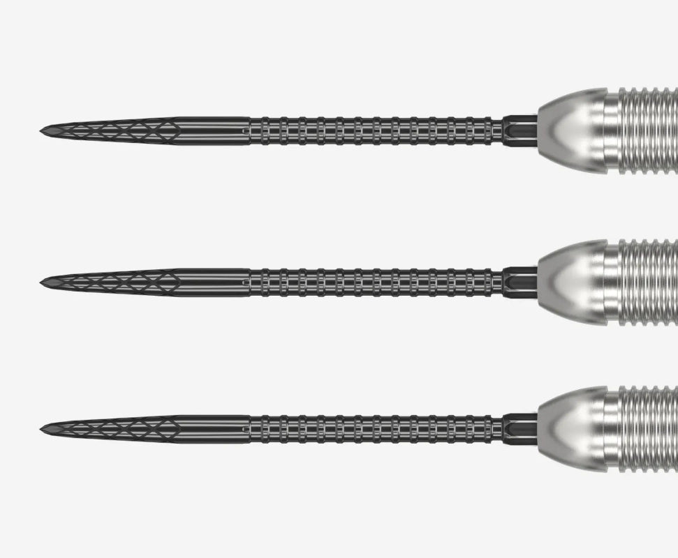 The Swiss DS point is a combination of Target's Diamond Pro and Surge points. The diamond grip at the front offers a laser-etched finish which phases into the surge grip at the base of the point offering an ultimate machined grip. The DS point delivers a stunning and unique grip unlike no other. Swiss Points are only compatible with Target Darts Swiss Point barrels.