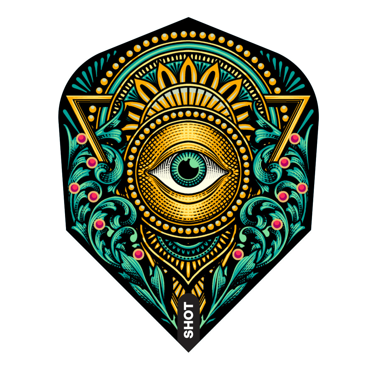 This dart flight is hand drawn and designed by the Shot dartisans.